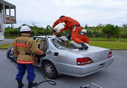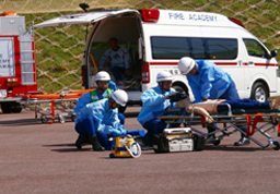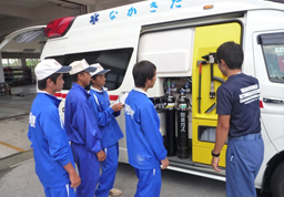 中城北中城消防本部は高規格救急自動車(高度な処置のできる救急車)を3台配置しており、救急救命士を中心に、あらゆる救急要請に対応できるように日々、勉強を重ね、近隣の病院で研修を受けながら、技術の向上を重ねています。