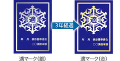 基準に適合した場合、最初は「適マーク(銀)」(有効期限1年間)が交付され、3年間継続して基準に適合していると認められた場合には「適マーク(金)」(有効期間3年間)が交付されます。
