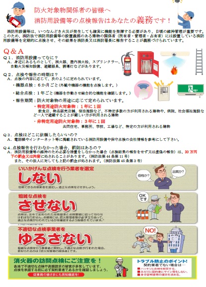 防火対象物関係者の皆様へ消防設備等の点検報告はあなたの義務です!